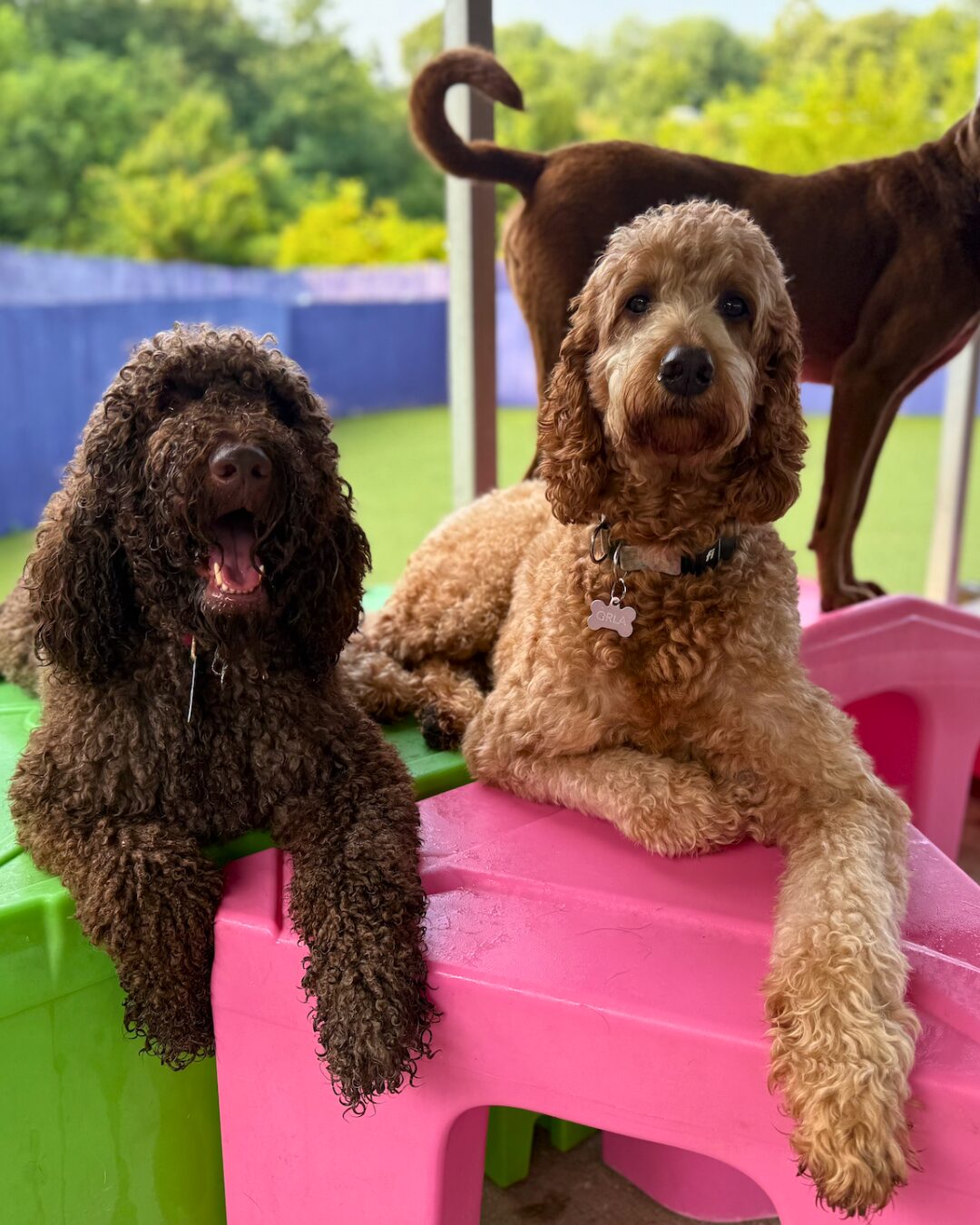 We pair dogs by size, energy, and play style—whether it’s our “Teeny” pack under 30 lbs or big open fields for larger dogs, always supervised by caring pros.