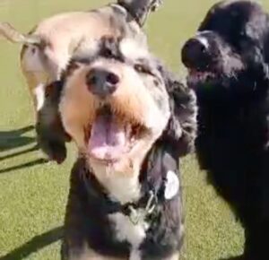 Louie doesn’t just walk into the play yard — he prances. Every step screams royalty, every glance says, “Peasant, toss the tennis ball.”