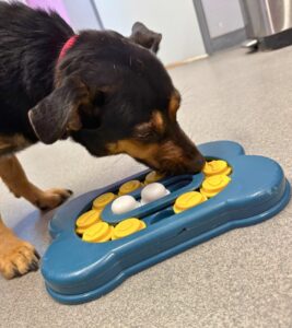 Icy sidewalks and salt-treated roads often lead to fewer walks — especially when paws become irritated or conditions feel unsafe. While limiting walks can be necessary, mental stimulation still matters.